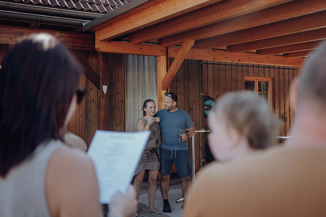 Am späten Nachmittag warteten einige Freunde auf das Liebespaar. Sie überraschten die Beiden mit einigen Spielen und Aufgaben. Danach wurde bis in die Morgenstunden gemeinsam getanzt, gefeiert, gelacht und geweint.