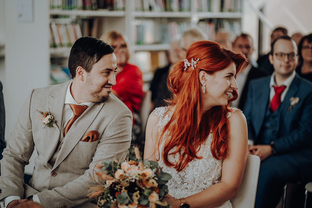 Die Trauung von Bettina und Markus fand in einer charmanten Bibliothek in Grieskirchen statt, die eine warme und einladende Atmosphäre bot. Die Liebe zwischen Bettina und Markus war in jedem Moment spürbar. Die Zeremonie war von tiefer Zuneigung und gegenseitigem Respekt geprägt, und die emotionale Bindung zwischen dem Brautpaar und ihren Gästen war deutlich zu spüren.