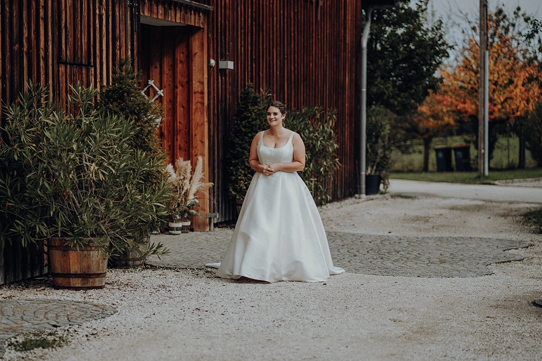 Der goldene Oktober zeigte sich an diesem Tag von seiner allerschönsten Seite. Die Herbstfarben leuchteten in warmen Tönen, während die letzten Sonnenstrahlen sanft über den Michlhof in Laakirchen zogen. Es war meine letzte Hochzeit der Saison – und was für ein wunderschöner Abschluss!